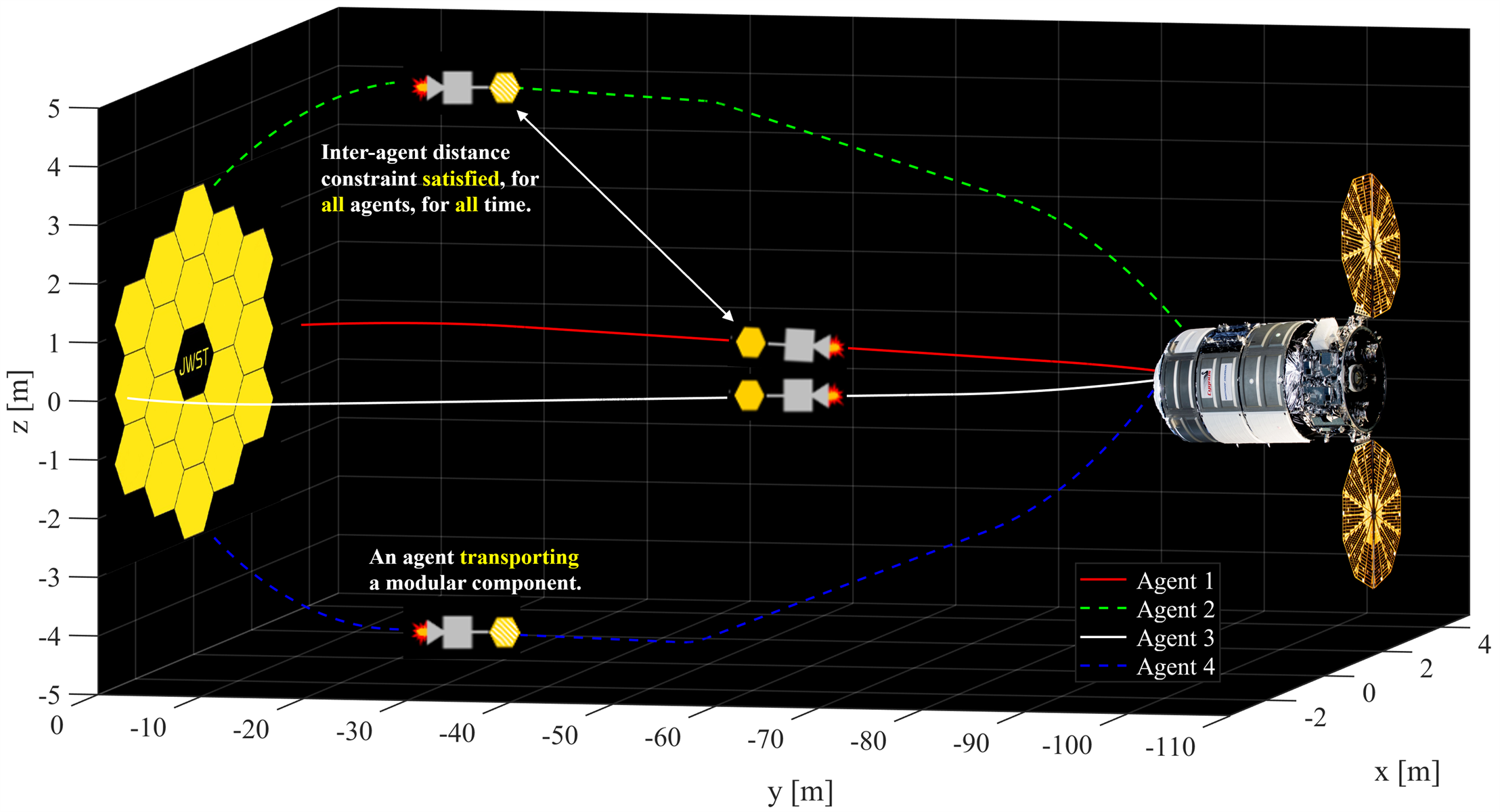Questo algoritmo è stato testato attraverso simulazioni in cui due, tre o quattro cubesat trasportavano componenti modulari tra un veicolo di servizio e un telescopio in riparazione. L’obiettivo era garantire operazioni sicure, minimizzando il consumo di propellente e assicurando che i cubesat mantenessero una distanza minima di sicurezza di almeno 5 metri l’uno dall’altro.